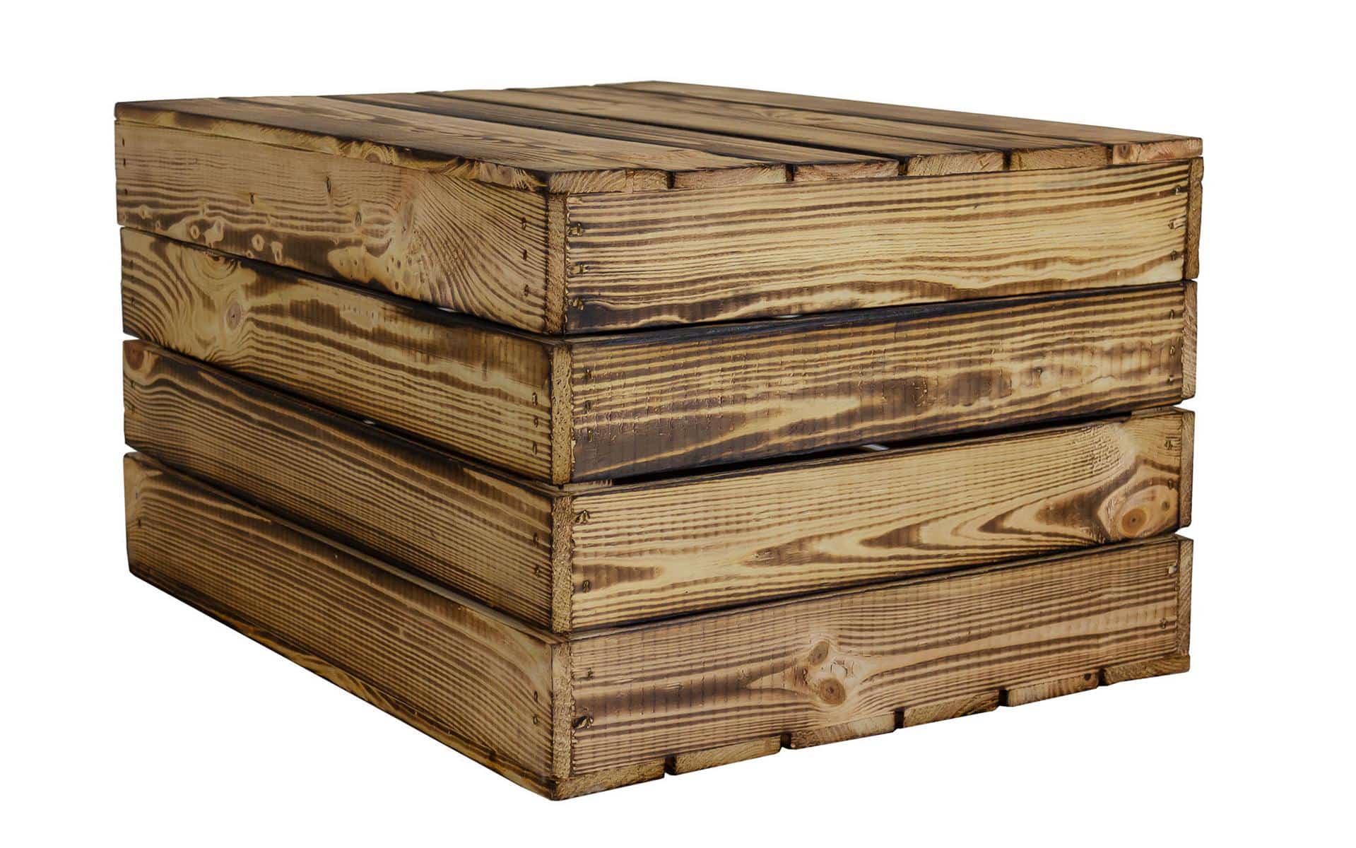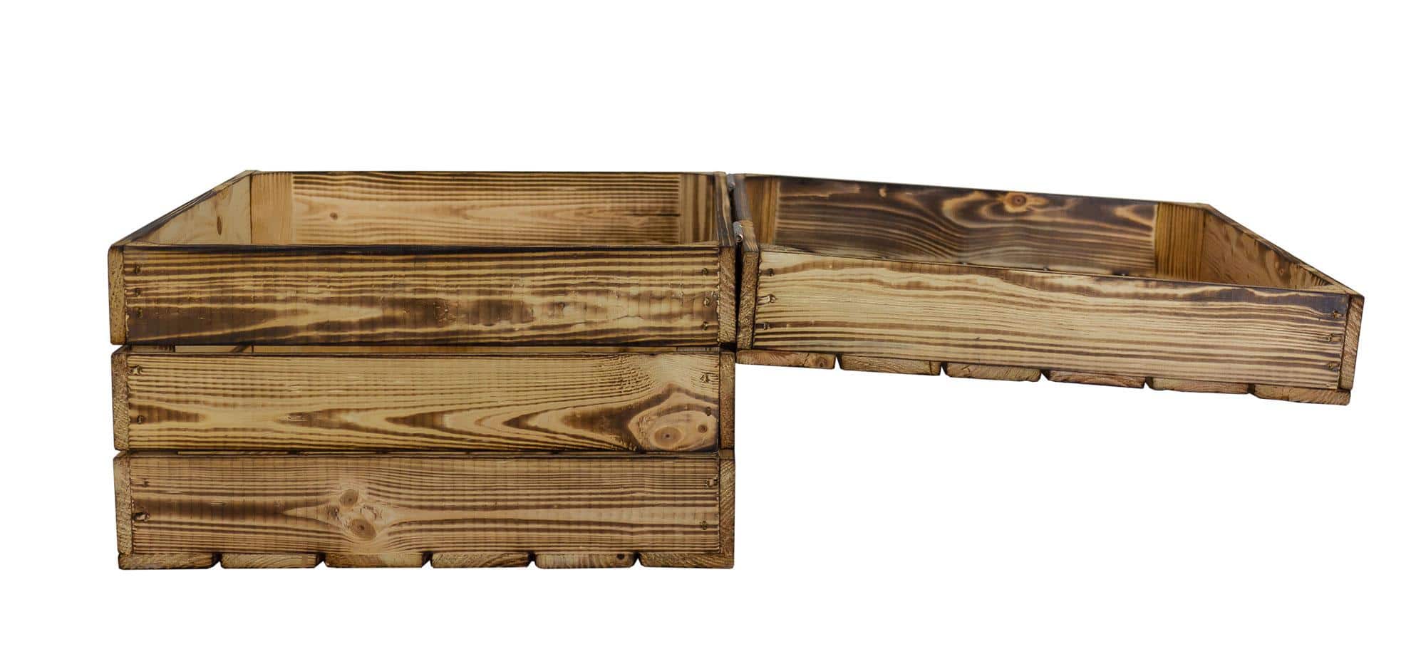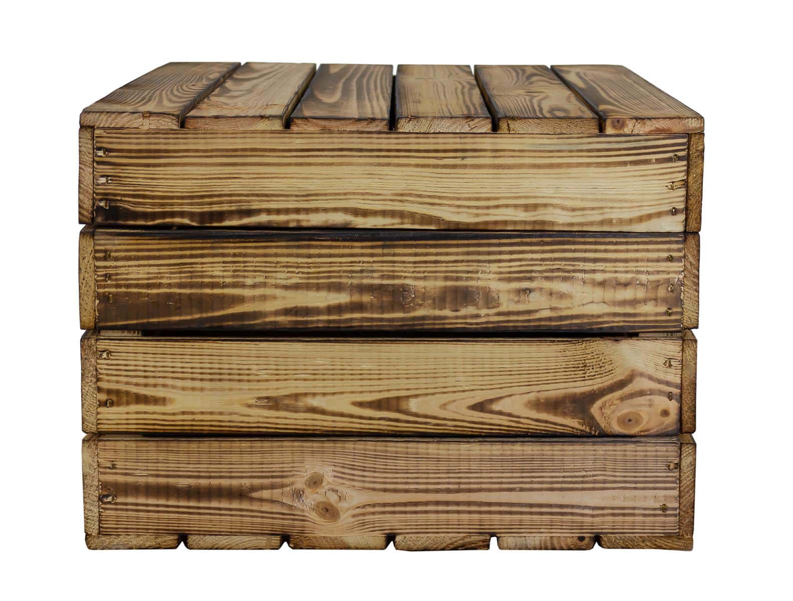 Holztruhe mit Deckel – Geflammte Truhe aus Holz – geflammt