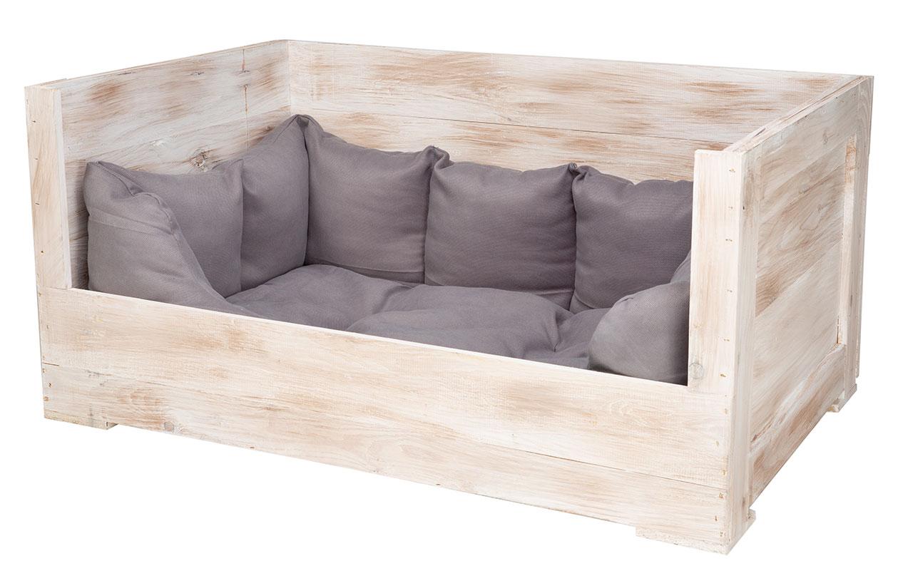 - Hundebett im Naturholz und Shabby Chic Look