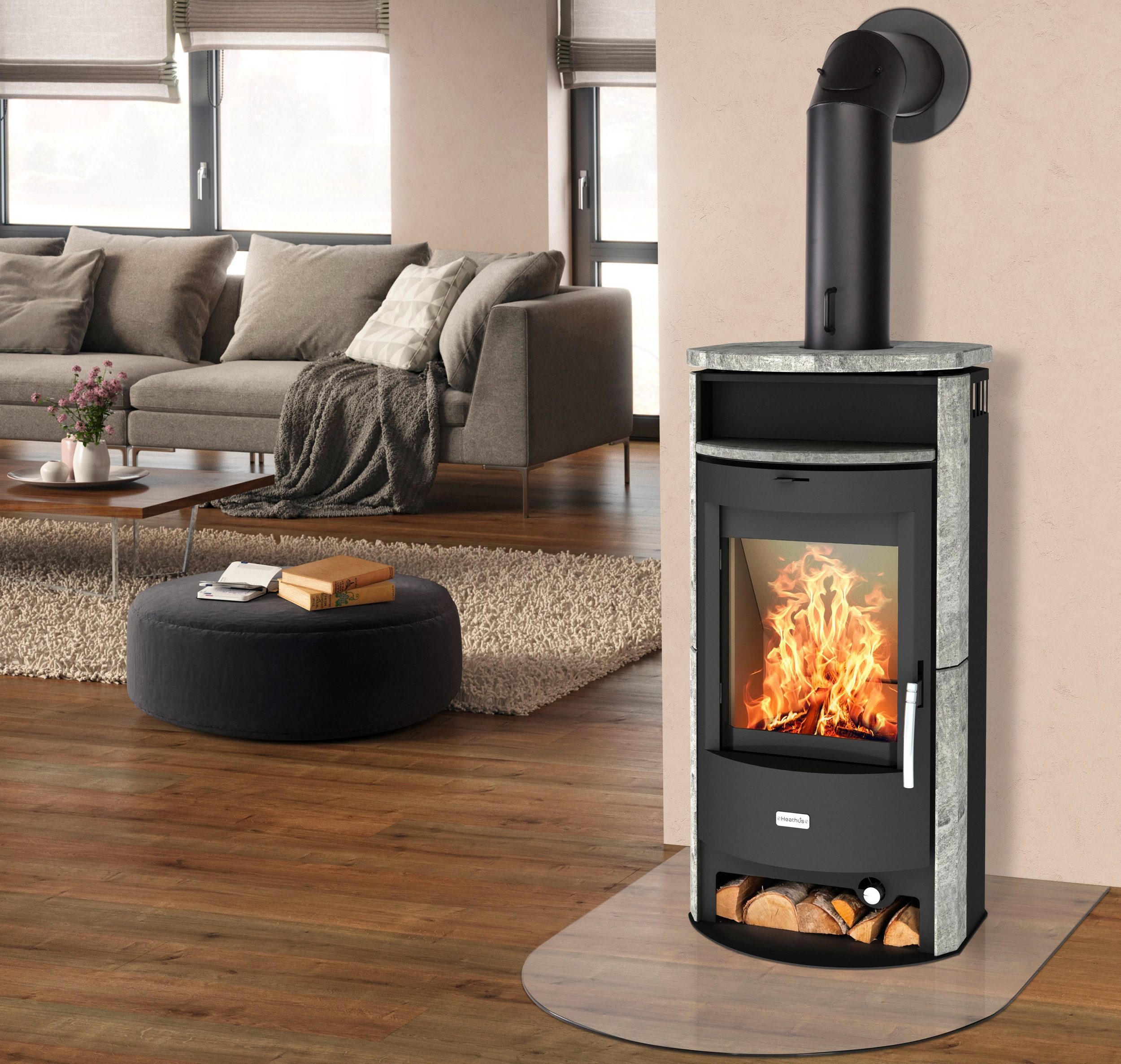 Der ovale Kaminofen »Parma Speckstein« des Herstellers Heathus ist gut mit unterschiedlichen Wohnstilen kombinierbar.