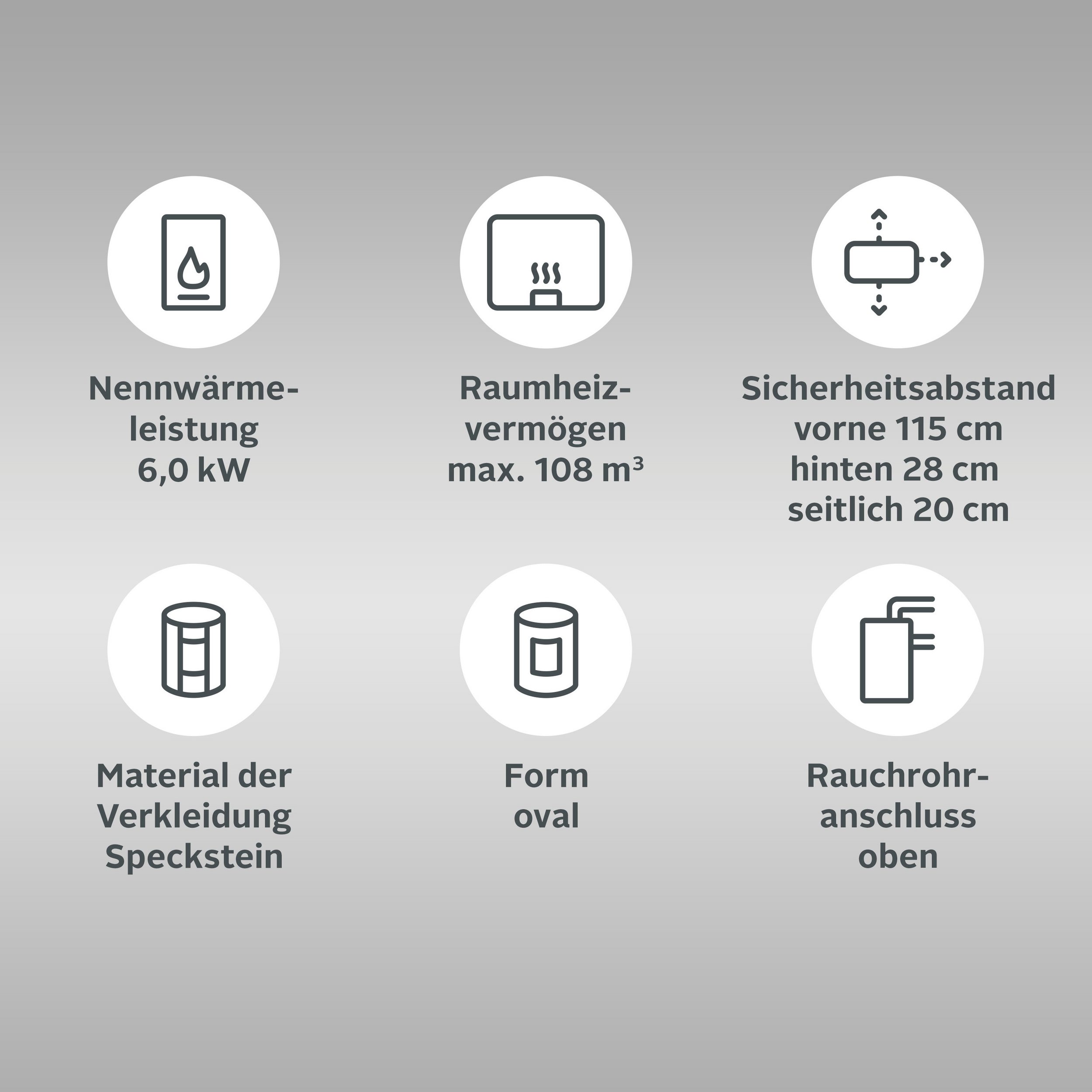 - Max. Raumheizvermögen bei Zeitbrand sind 108 m³