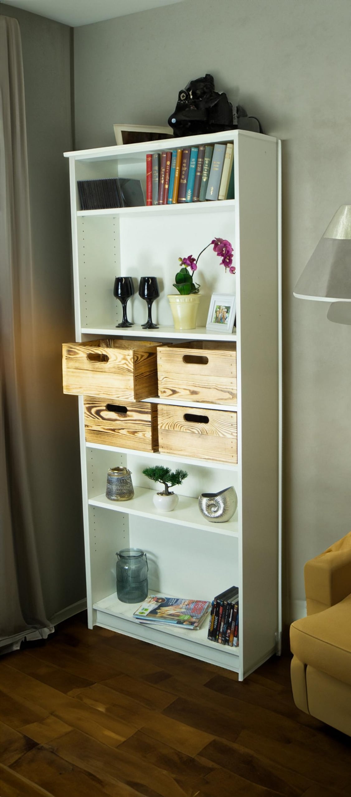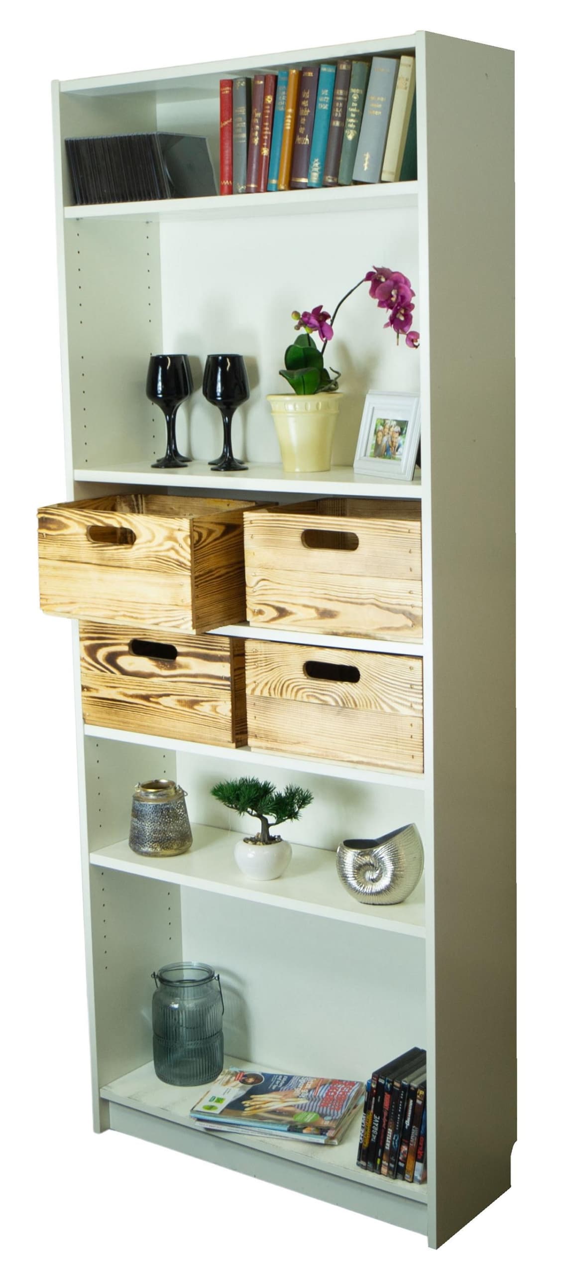 Passende Kiste für Billy Regal von Ikea in der Farbe geflammt. Die Holzkiste passt in das Ikea Billy Regal. Ideal als Einschubkiste – Holzbox – Aufbewahrungsbox zum Verstauen, Ordnen, Aufbewahren, Sortieren und für ein schöneres Design in den Regalen. Die Boxen aus Holz als praktische Stauraumlösung. Die Kisten gibt es in 2 verschiedenen Größen.