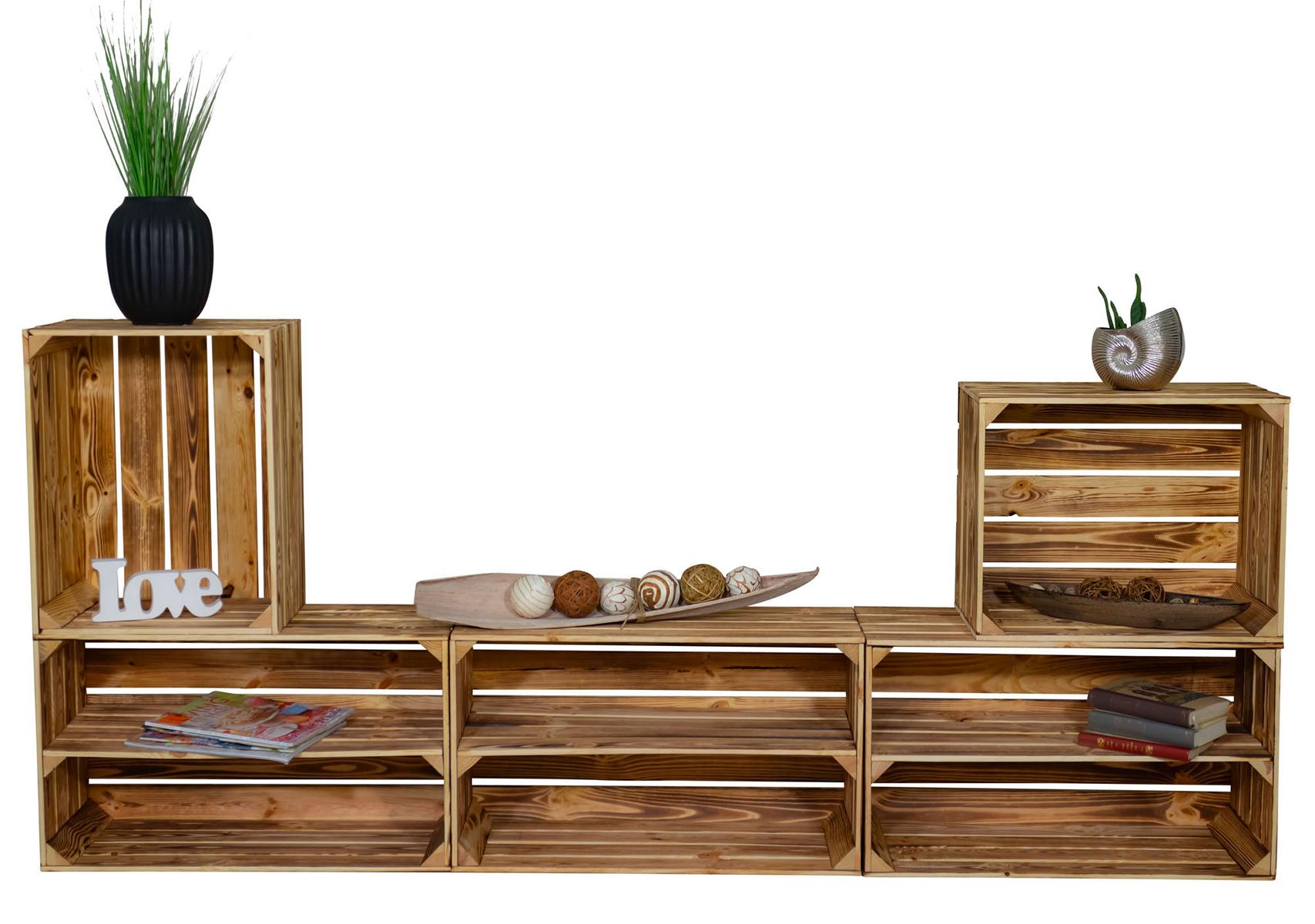 • Geflammte Holzkisten – Obstkisten Möbel Regale