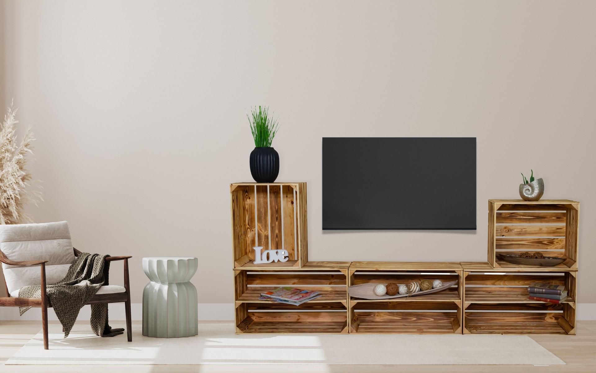 Wohnbereich aus geflammten Holzkisten – Wohnwand  – TV Regal